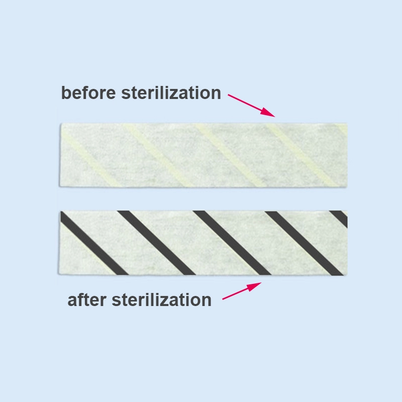A medical packaging roll made of sterilization paper and transparent film, used to pack instruments for steam sterilization. It allows sterilant penetration while keeping contents sterile until use. Features include strong seals, indicator ink, and clean peel opening. Single-use, must be stored dry, and used with a heat sealer.